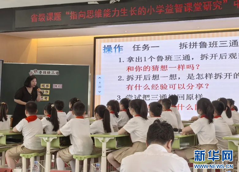 福州市花园小学郭莹老师的《玩转鲁班锁三通》,引导学生在动手操作中观察、思考、推理,提高空间感知和推理能力。新华网发(福州市鼓楼第二中心小学教育集团供图)