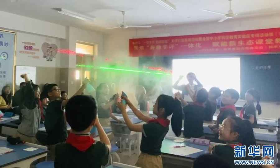 鼓二小军门校区科学老师陆继华《光的传播》一课,通过科学探究活动,引领学生领略科学的魅力。新华网发(福州市鼓楼第二中心小学教育集团供图)