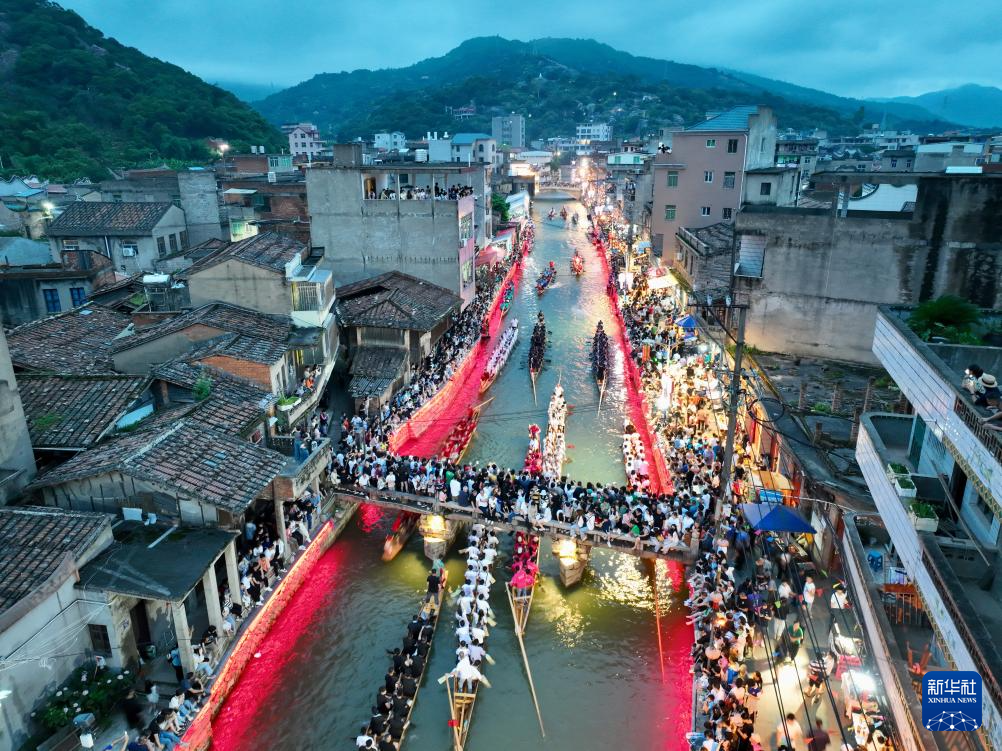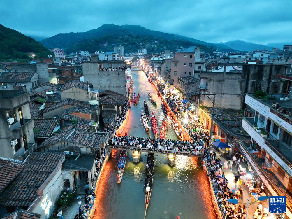 6月9日,福州市长乐区三溪村在夜赛龙舟迎端午。新华社记者 姜克红 摄