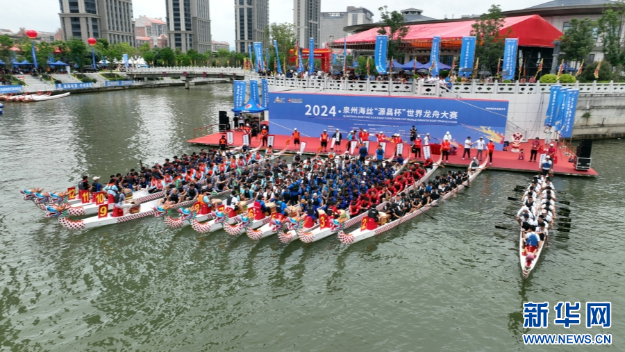2024年泉州海丝“源昌杯”世界龙舟大赛现场,参赛队伍争流竞渡。新华网发(林楷煜 摄)