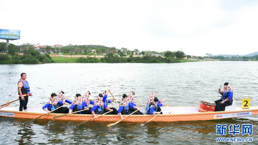 2024年“一带一路”青年龙舟国际邀请赛现场,一支参赛队伍的队员们身着惠安女服饰,格外吸睛。新华网发(主办方供图)