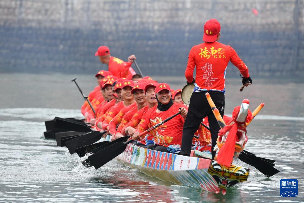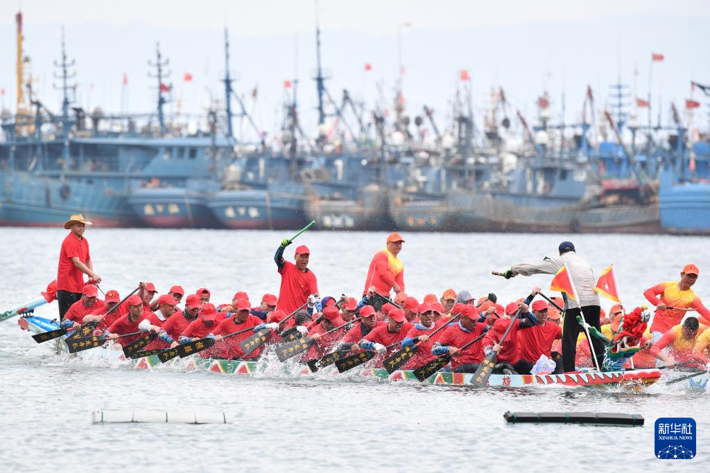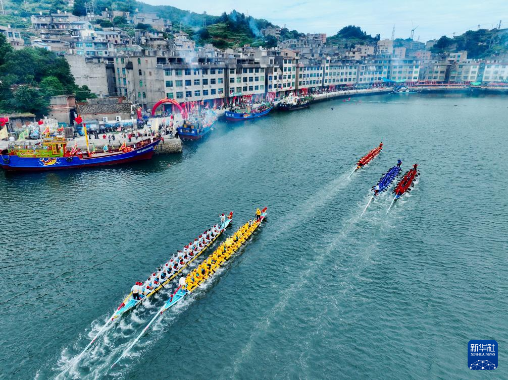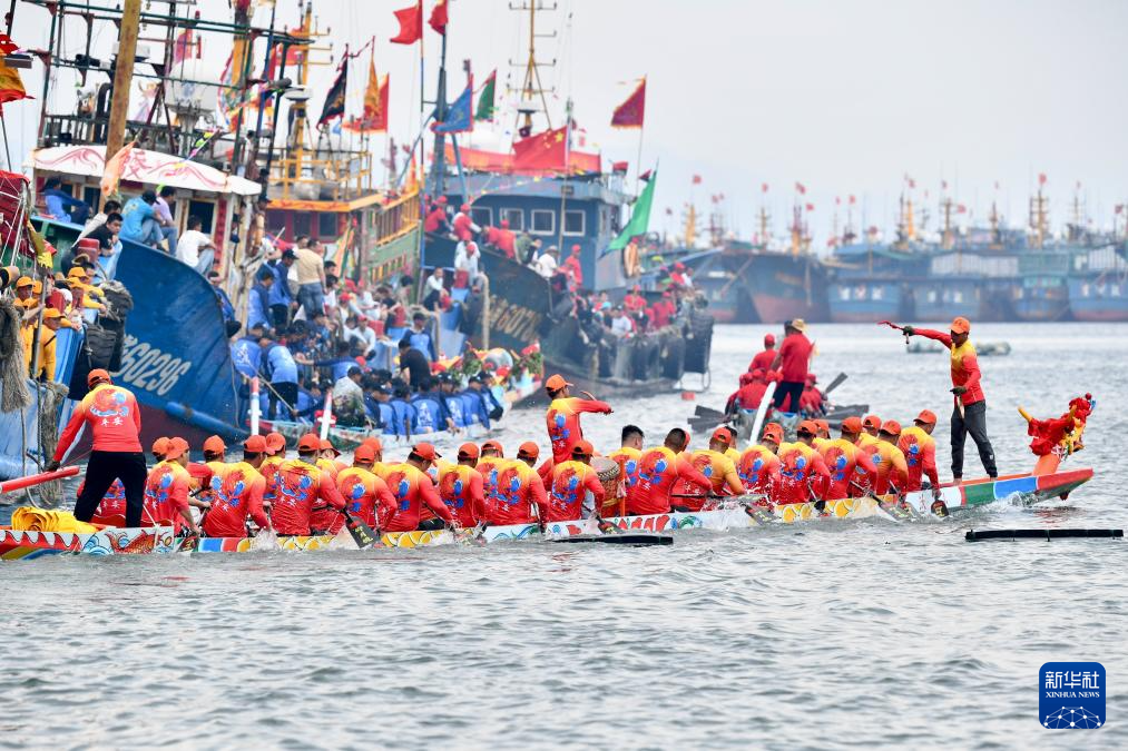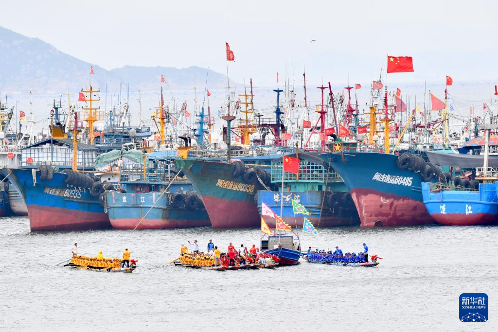 当日,福建省福州市连江县苔菉镇在苔菉中心渔港举行海上赛龙舟活动,来自各村的龙舟队开展海上竞渡、庆端午联谊活动,以祈求风调雨顺、五谷丰登。连江县海上赛龙舟民俗历史悠久,从农历五月初一至五月初八,渔民们长达8天的海上赛龙舟活动成为远近闻名的端午文化盛宴,吸引众多游客前来观赏。