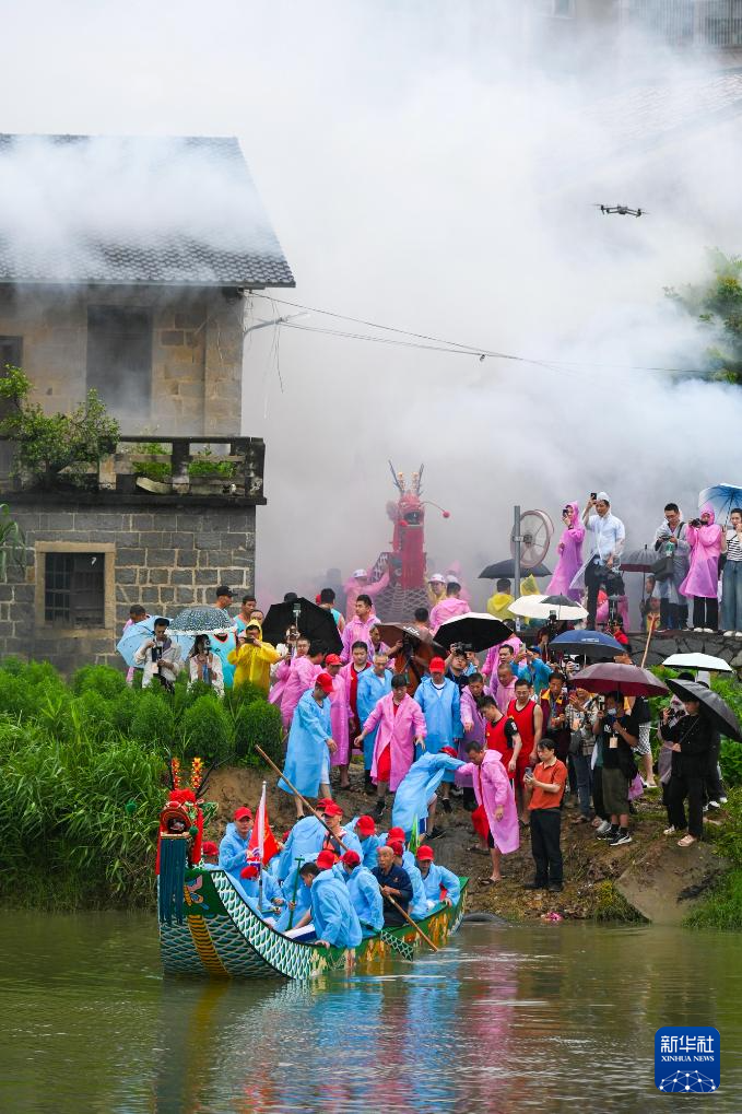 仙游县枫亭镇的龙舟下水仪式现场。(张力 摄)
