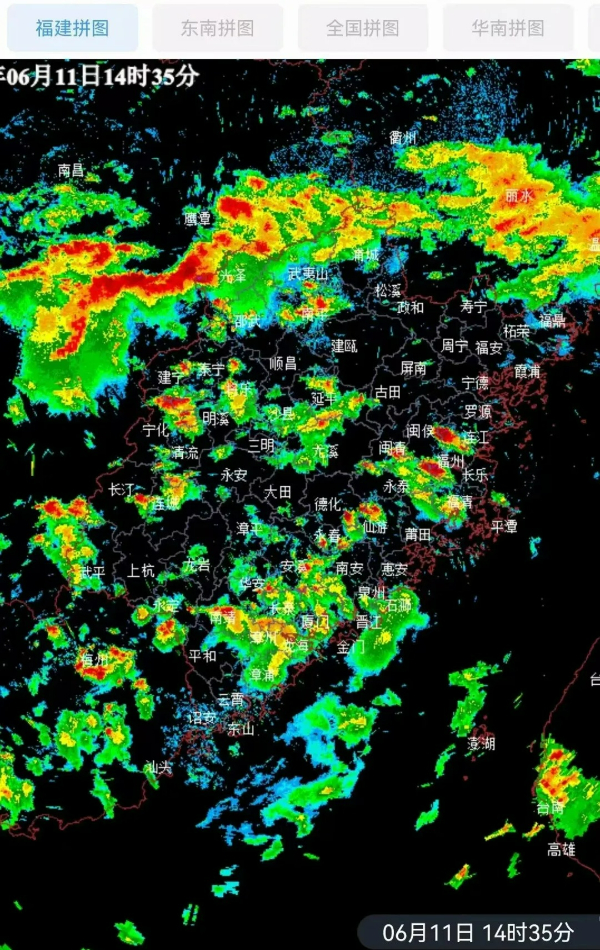 6月11日下午福建雷达回波图。新华网发(福建省气象台供图)