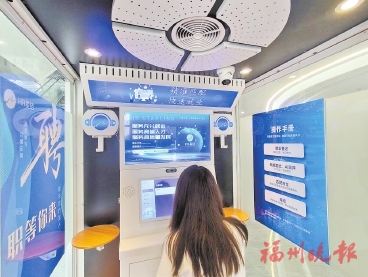 点击电子屏,选择求职方向,生成VR简历,由AI面试和测评……近日,在闽侯东南汽车城人力资源服务产业园内,我省首次投用的2个数智就业一体化平台,吸引不少“尝鲜”的求职者。