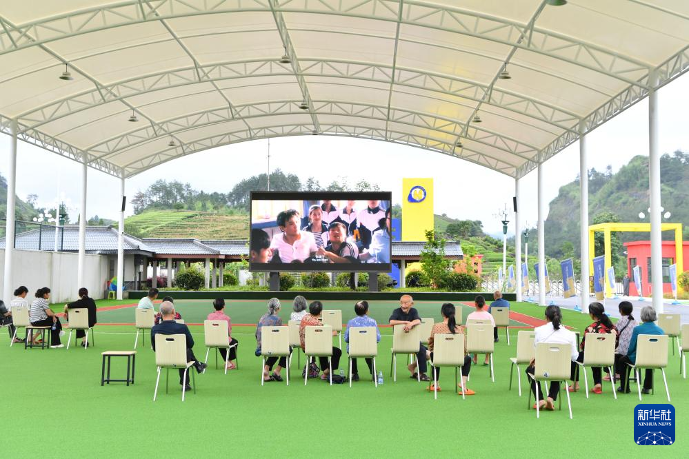 6月15日,福建省武夷山市转移群众在避灾安置点海亮研学基地内观看电影。新华社记者 姜克红 摄