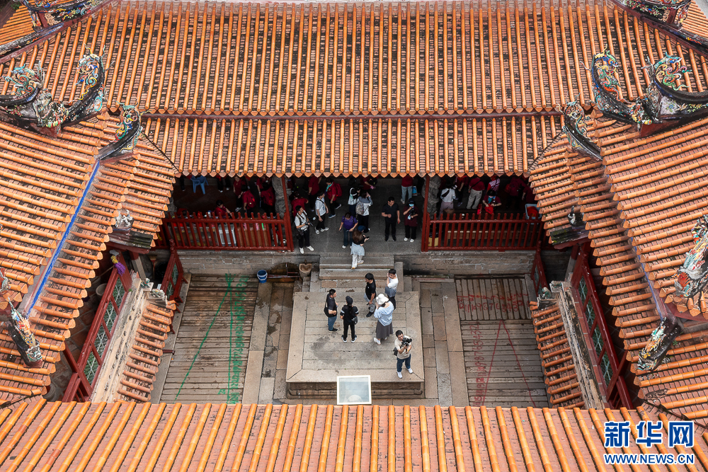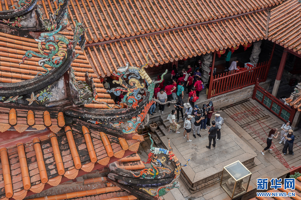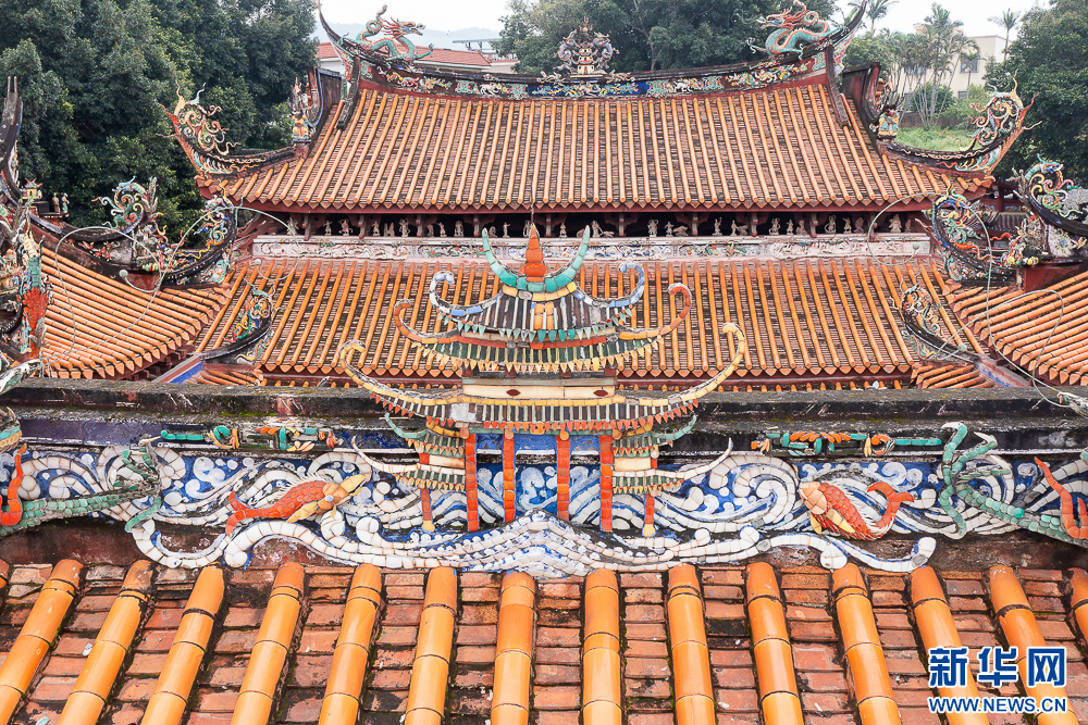 这是在白礁慈济宫屋顶拍摄到的精美雕饰(无人机照片)。新华网 肖和勇 摄