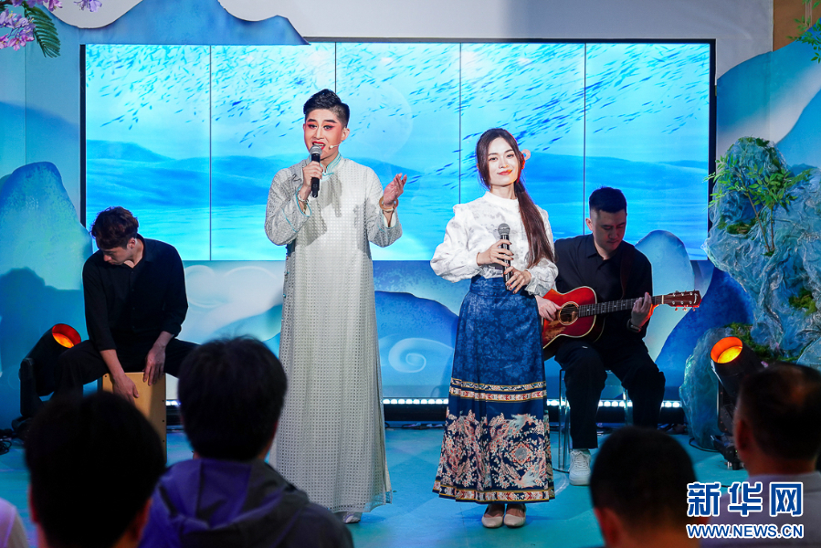 闽剧唱腔与通俗唱法同台演绎歌曲《声声慢》。新华网 肖和勇 摄