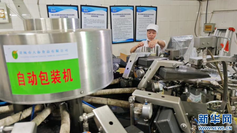 建瓯天添食品公司生产车间一角。新华网 刘默涵 摄
