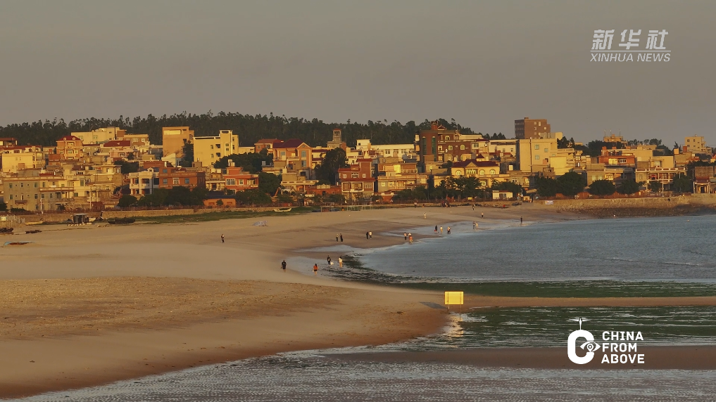 瞰中国|福建晋江:落日余晖映海湾