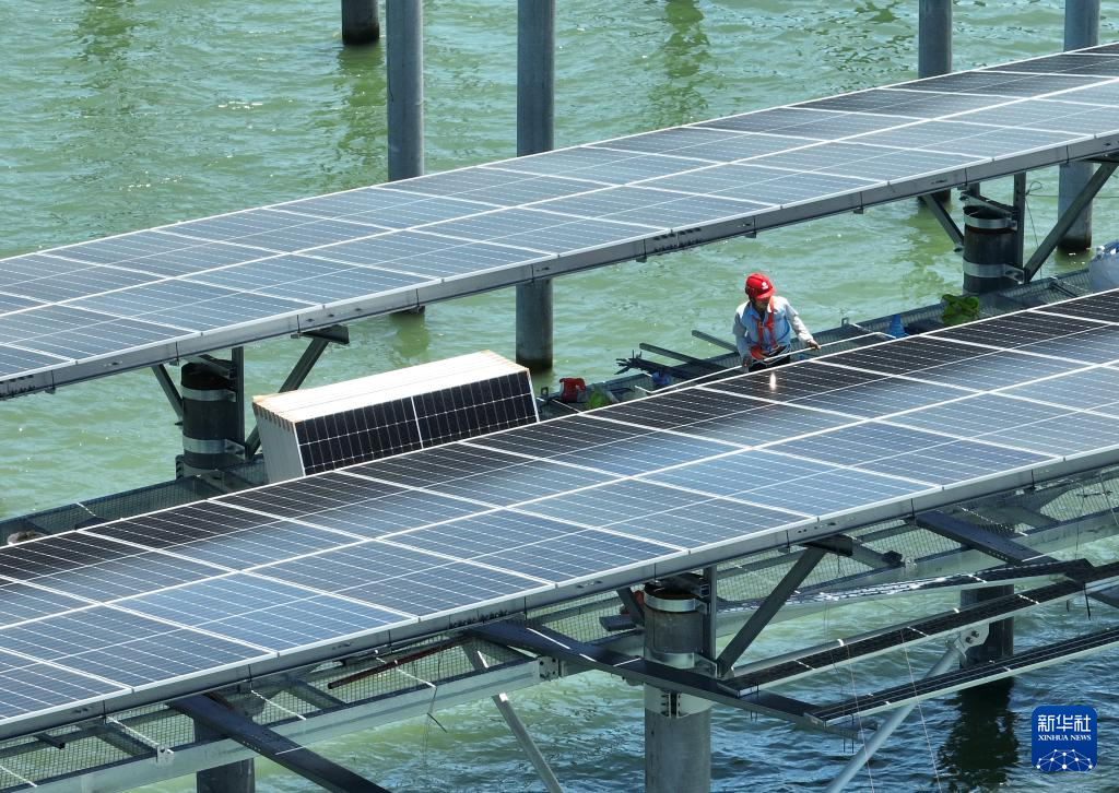 6月20日拍摄的三峡集团东山杏陈180MW海上光伏电站建设现场(无人机照片)。新华社记者 林善传 摄