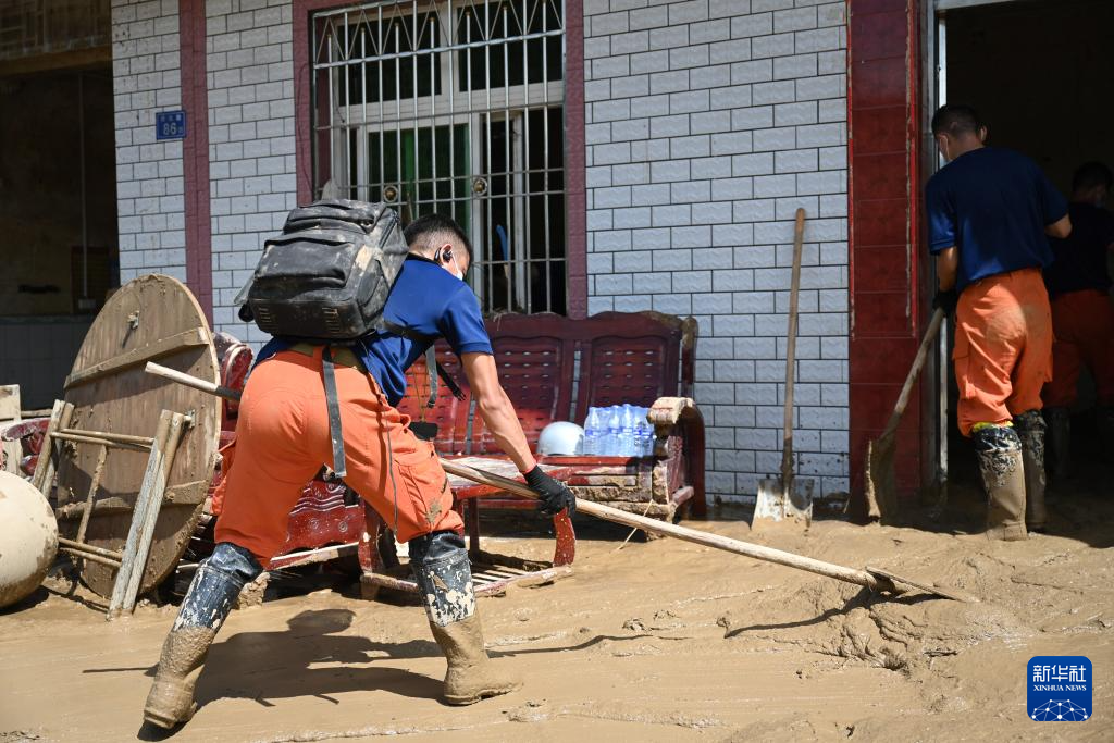 6月20日,福建森林消防总队龙岩支队队员在龙岩市武平县中赤镇帮助村民清淤。新华社记者 周义 摄