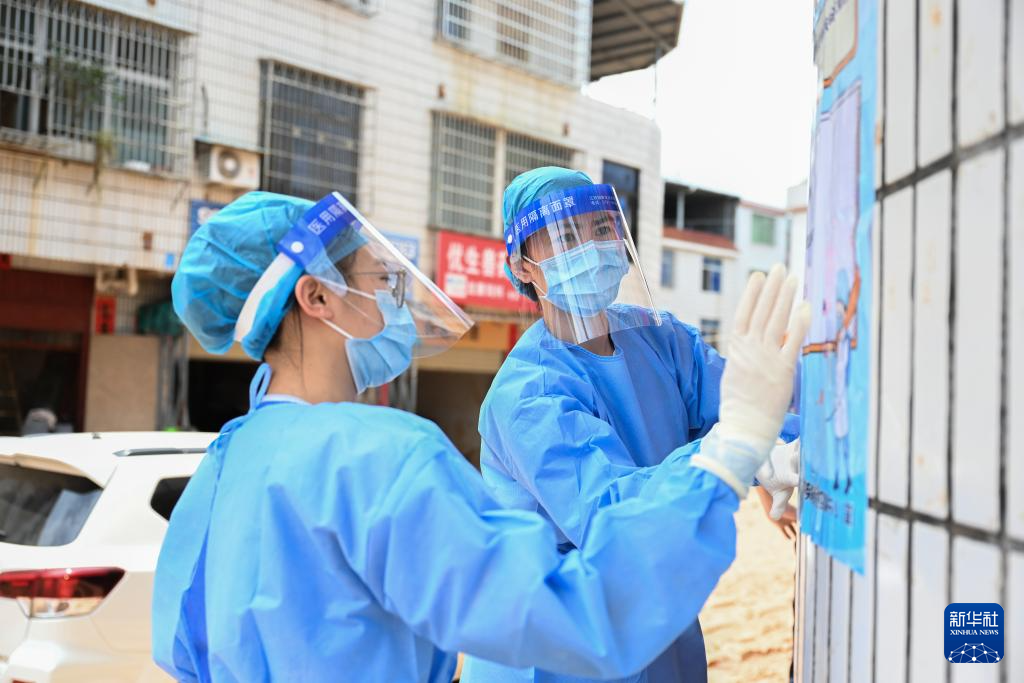 6月20日,在龙岩市武平县中赤镇,防疫工作人员在张贴海报。