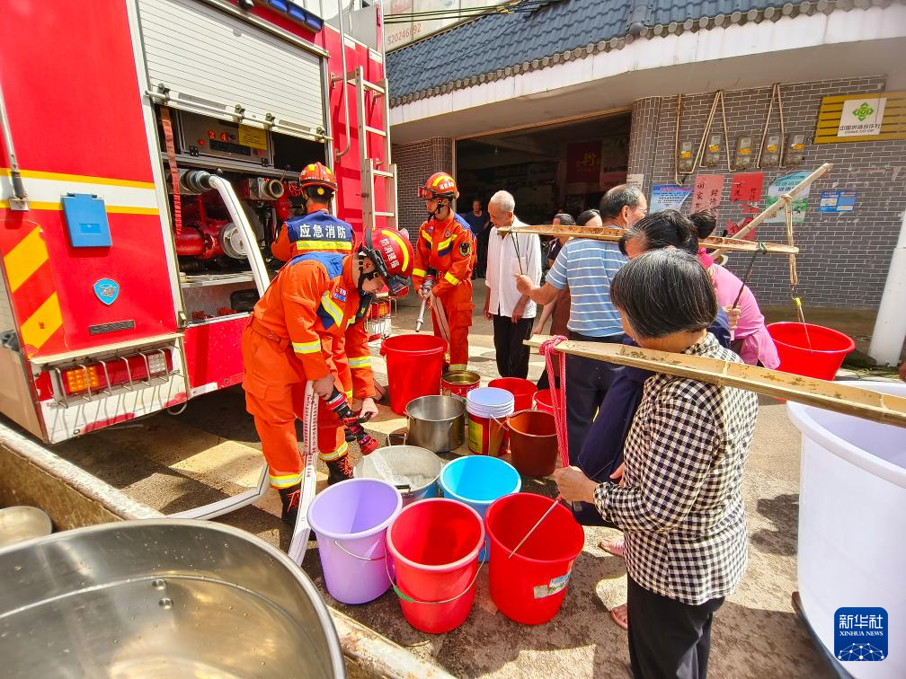 6月20日,福建省龙岩市消防救援支队指战员为武平县象洞镇群众送去生活用水。新华社发
