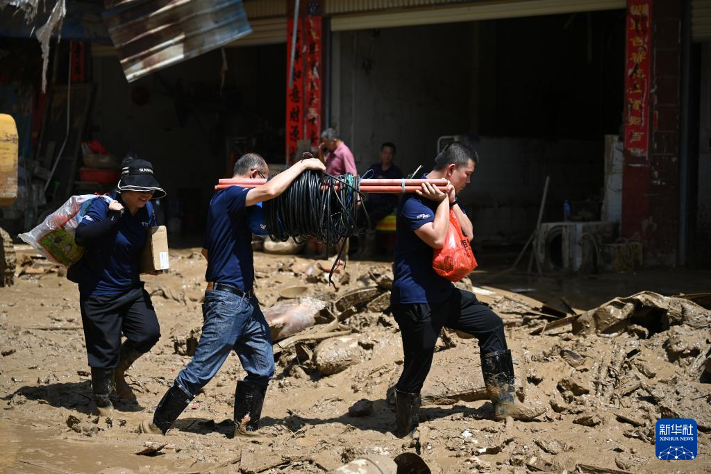 6月20日,在龙岩市武平县中赤镇,志愿者在帮助村民清理物品。新华社记者 周义 摄