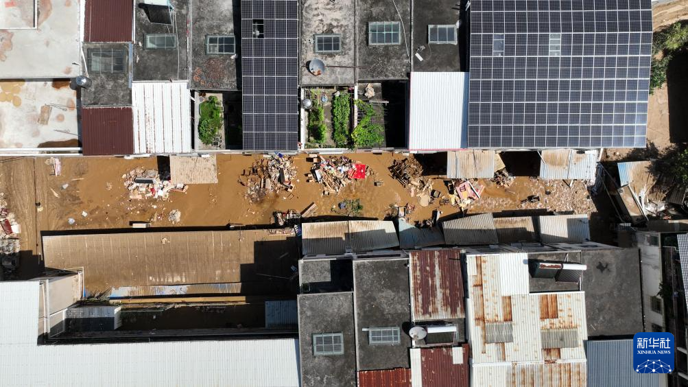 6月20日,消防员在龙岩市武平县中赤镇开展清淤工作(无人机照片)。新华社记者 周义 摄