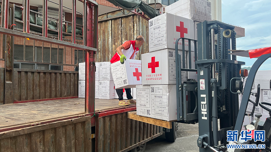 救灾物资发往受灾地区。新华网发(福建省红十字会供图)