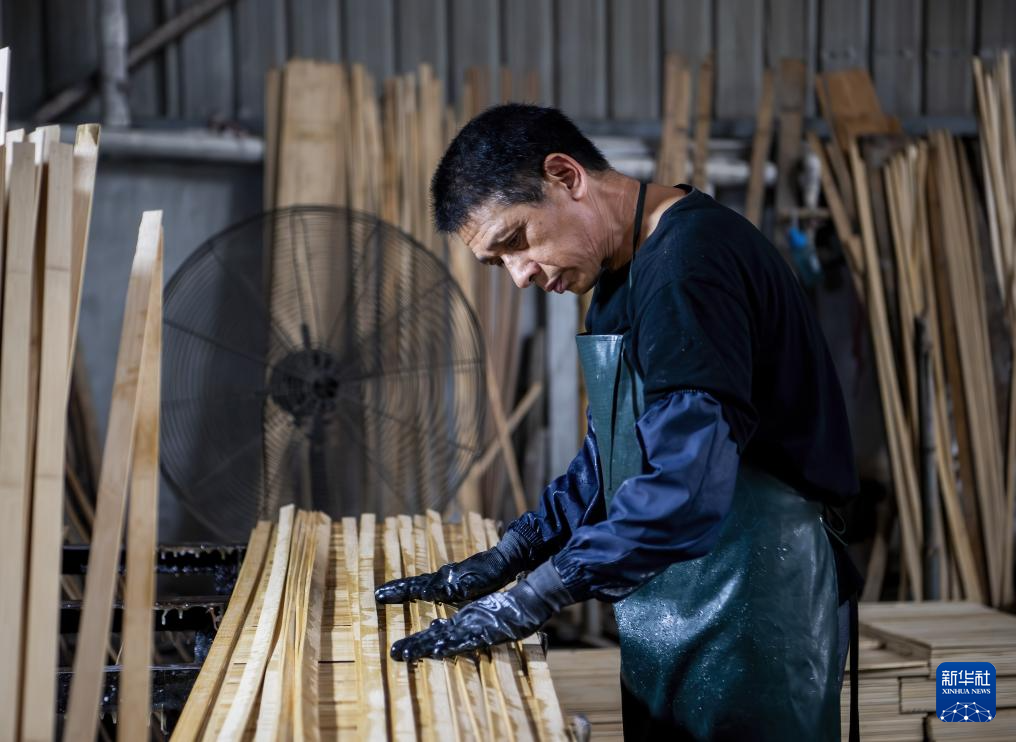 6月23日,在刚投产的福州亨嘉工艺品加工厂,工人加紧生产出口国外的家具订单。新华社记者 魏培全 摄