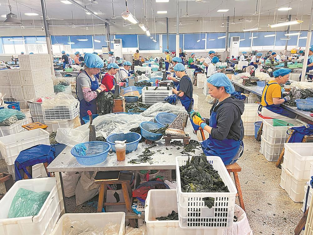 尝到甜头后,溢源公司在先行先试的路上愈行愈远。其盐渍海带加工基地就设在国家海带生产标准化示范区东吾洋岸边,配套建设了海带吊装上岸专用渔港,装运海带的船舶24小时全天候均可靠岸卸货;鲜海带采收、拌盐、装袋、运输、入库等环节实现全程机械化;在烫煮加工流水线上,原有的燃煤锅炉已全部替换成天然气锅炉,操作便捷且环保……示范效应下,当地不少企业也加快了机械化生产步伐。