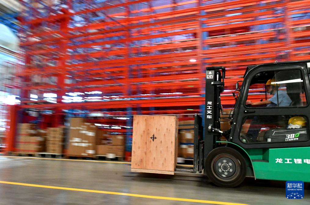 7月4日,在福州天宇电气股份有限公司车间,工人进行装运作业。