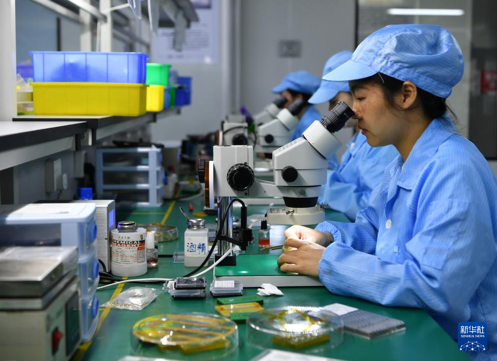 7月4日,在福建天蕊光电有限公司光通讯器件生产线上,工人在加紧生产。新华社记者 魏培全 摄