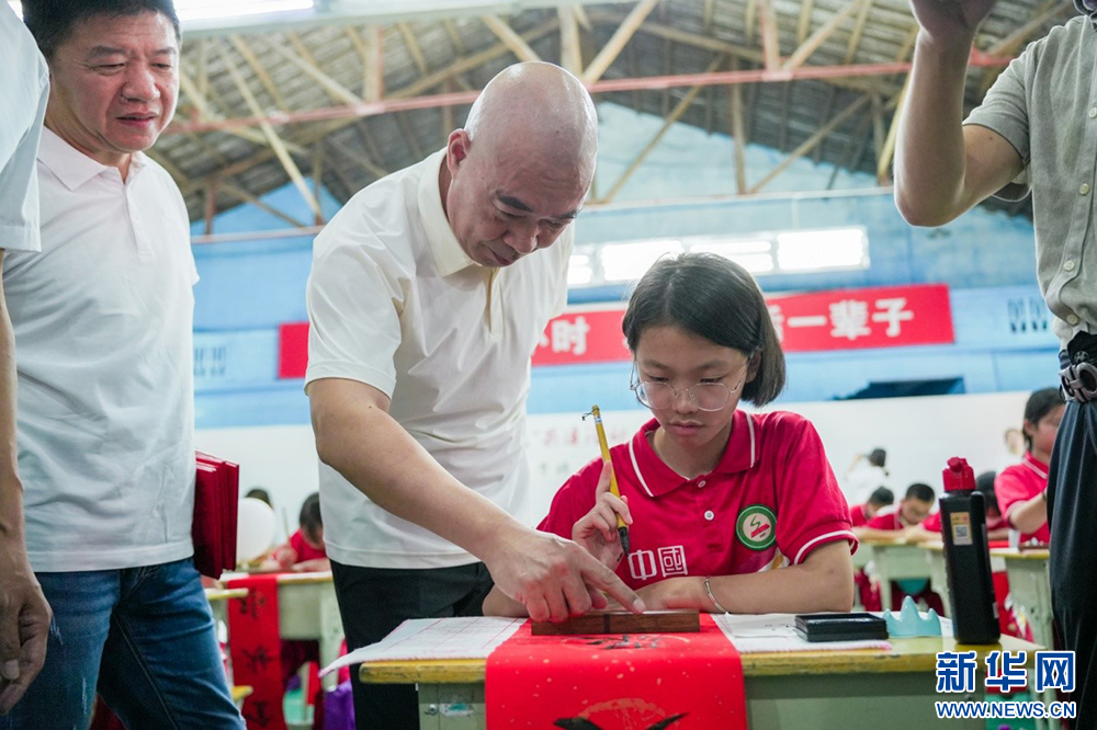书法家现场指导孩子书法练习。新华网发(受访者供图)