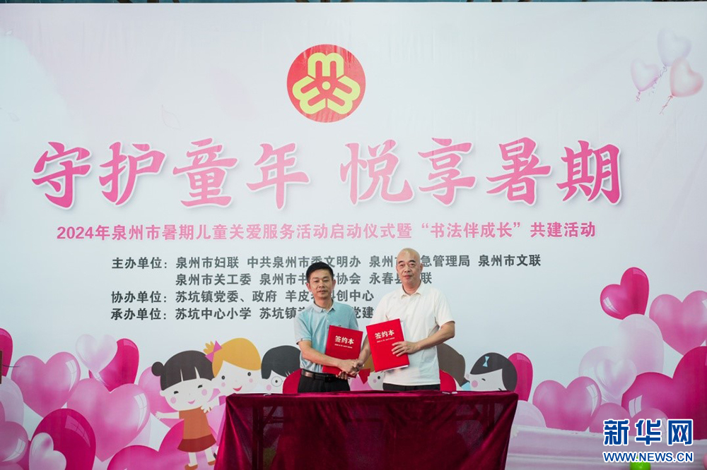 “书法的熏陶有利于孩子们养成高尚的道德品格。”永春县委常委肖海华介绍,永春县妇联以“守护童年 悦享暑期”为主题,常态化开展儿童关爱服务工作。牵线此次签约,将发挥市书法家协会的专业优势,结合苏坑中心小学的书法品牌特色课程,以书法公益课堂、书法家墨宝“微展”、名家 “面对面”教学等形式,厚植书法特色教学底蕴,实现翰墨育人目标。