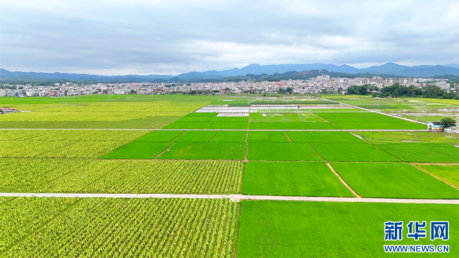 在龙岩市长汀县,稻田和烟田构成一幅美丽画卷。新华网 林晨 摄