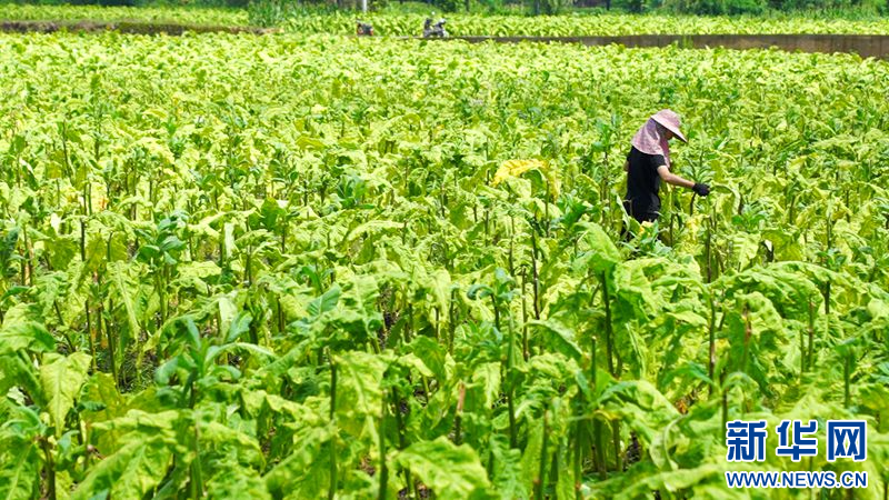 烟叶采收完,就要进行水稻播种。图为农民在采收烟叶。新华网 林晨 摄