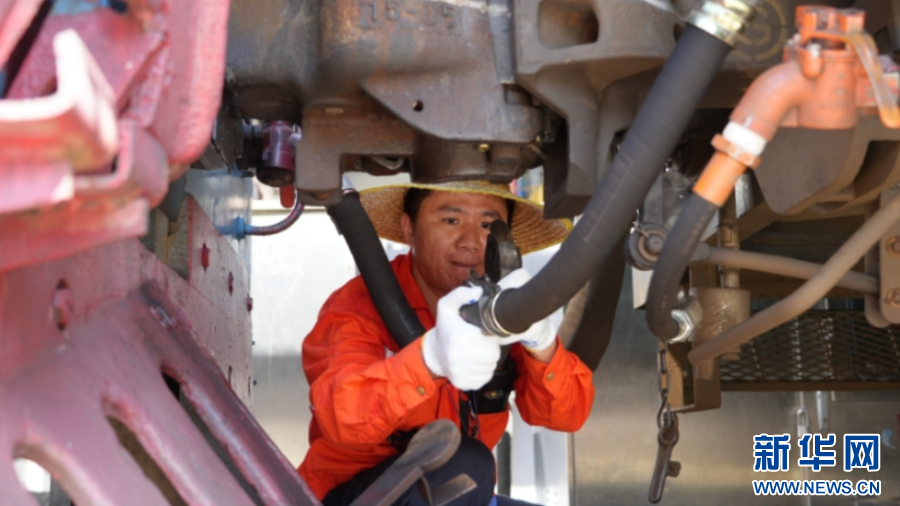 调车作业场所地表温度突破50摄氏度是常态。这是调车员顶着高温,在股道进行列车风管连接作业。新华网发(万宇 摄)