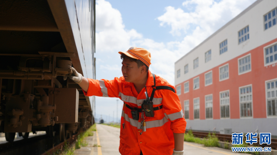 铁路调车员穿梭于移动的车辆之间,把一辆辆车连接成车列,把一列车拆分成一辆辆车,他们因此也被称为列车“编程师”,是一群大家平常“看不见”的铁路工作者。这是调车员顶着烈日观测车辆连挂距离。新华网发(万宇 摄)