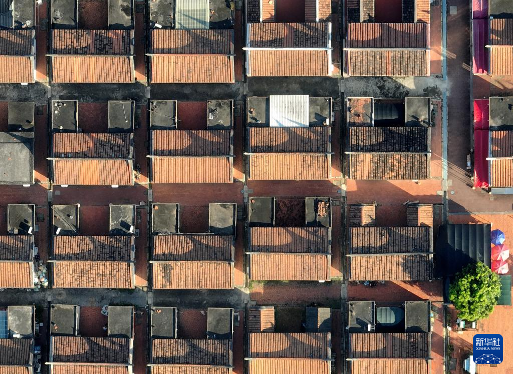 横竖对齐、整齐划一的埭美村古厝群(7月10日摄,无人机照片)。新华社记者 魏培全 摄