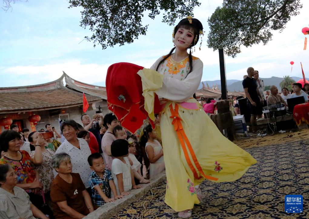 芗剧演员在埭美村广场为村民们表演芗剧(资料照片)。新华社发