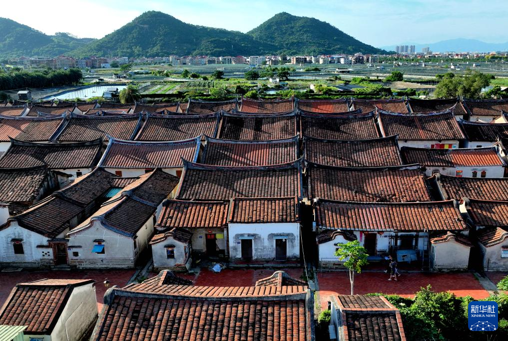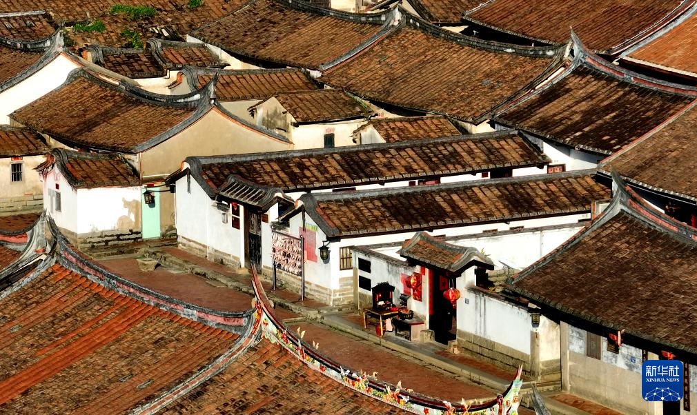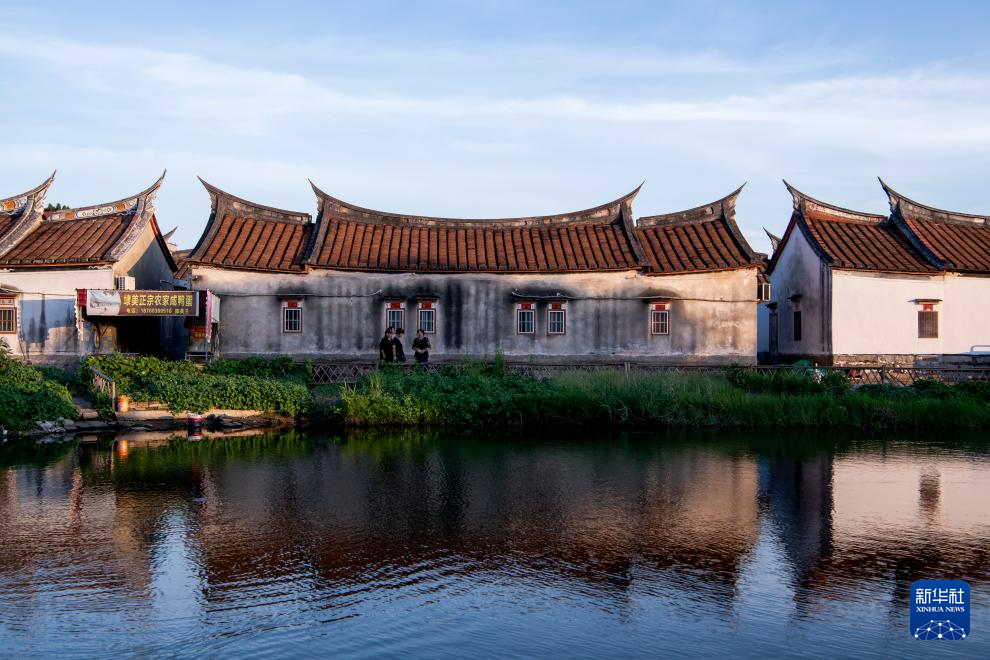 埭美村古厝采用木架结构利于防震,屋檐以闽南特色的红砖燕尾脊为主(7月10日摄)。新华社记者 魏培全 摄