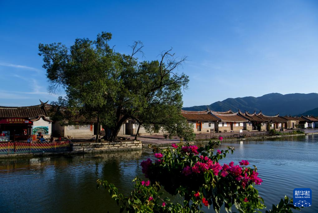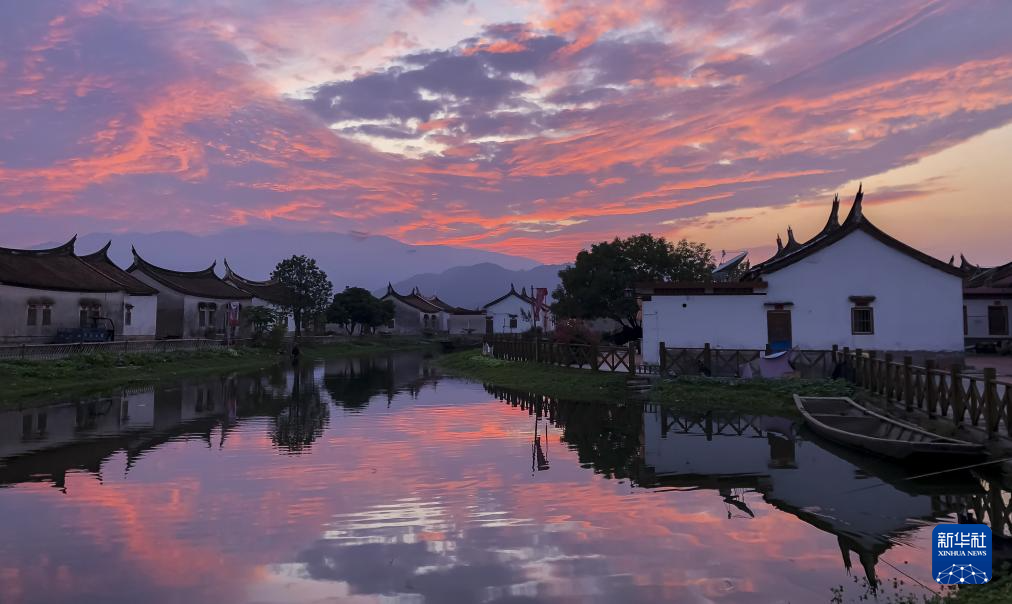 这是夕阳下的埭美水上古村景色(资料照片)。新华社发