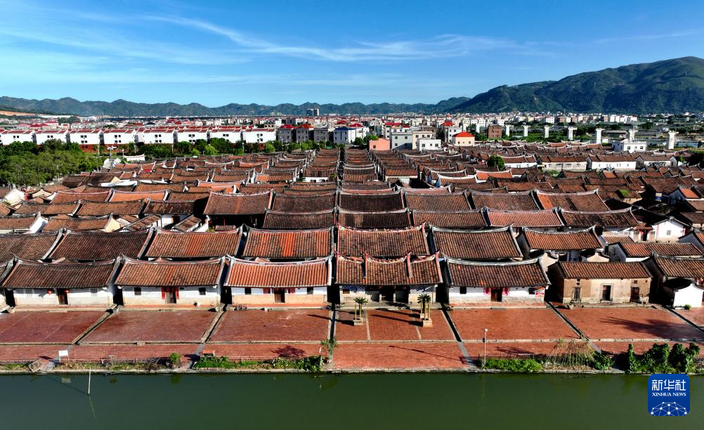 漳州龙海区东园镇埭美村的古厝,横竖对齐、整齐划一(7月10日摄,无人机照片)。新华社记者 魏培全 摄