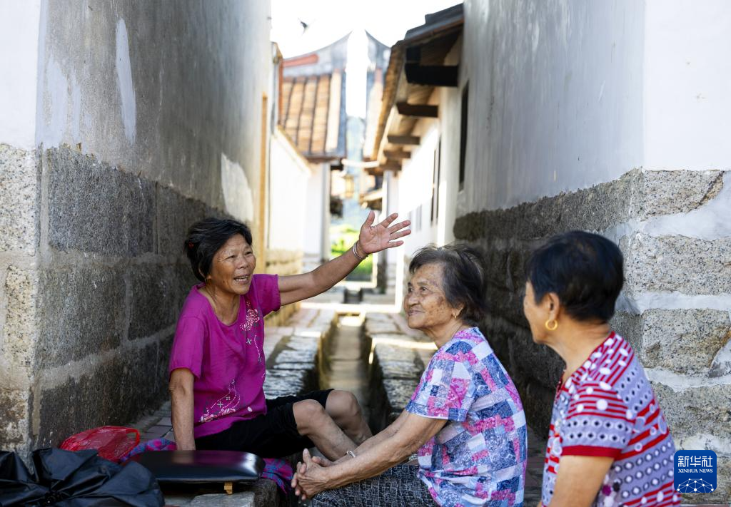 埭美村村民在古厝间乘凉聊天(7月10日摄)。新华社记者 魏培全 摄