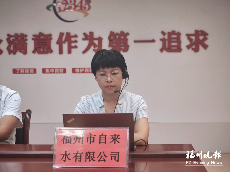 18日,福州市自来水有限公司总经理杜朝丹接听12345热线,回答群众关心的水池清洗、管道迁改、水费缴交、故障报修、水表过户等方面的咨询及诉求。