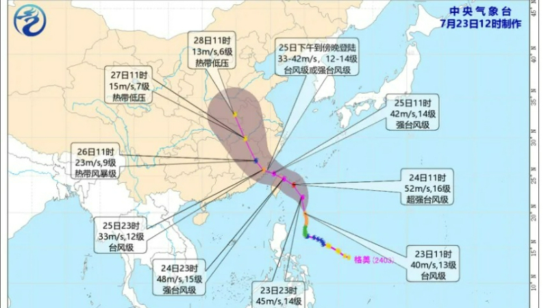 今年第3号台风“格美”正逐步向我国东南沿海一带逼近,预计将于7月25日在福建中北部沿海登陆。7月24日10时,福建省防指将防台风应急响应提升至Ⅱ级,并启动防暴雨Ⅳ级应急响应。