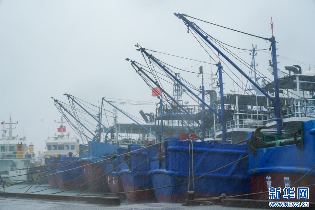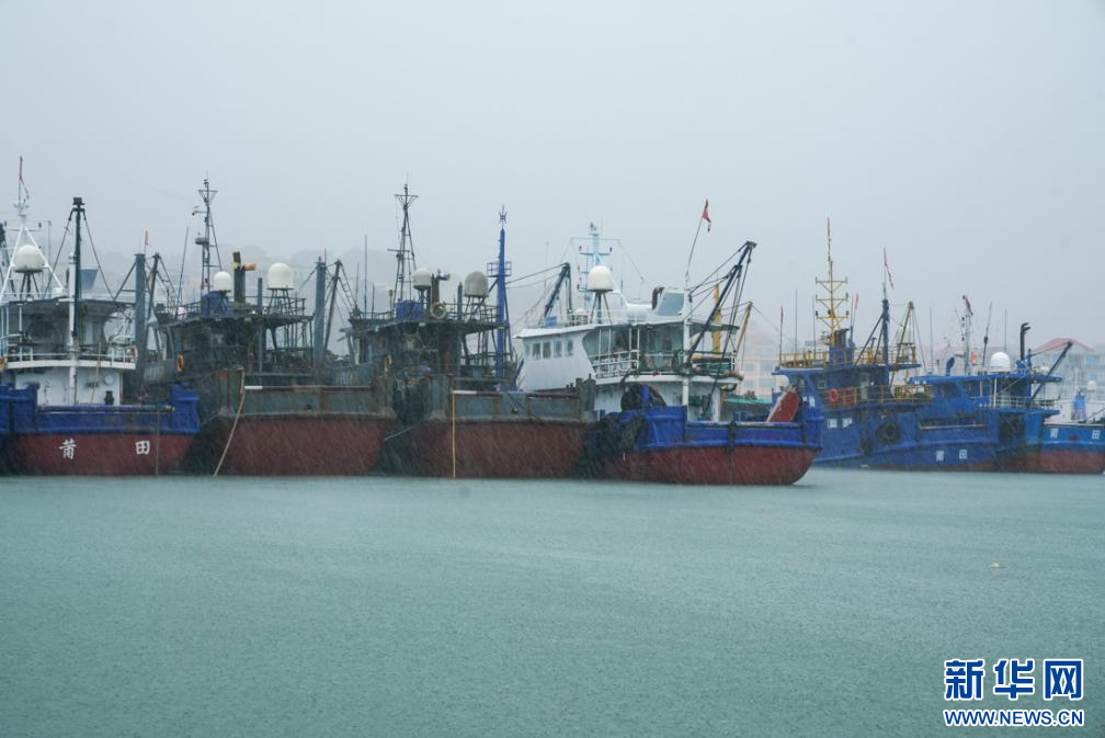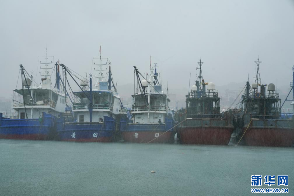 7月25日午后2时许,平海一级渔港,船只在风雨中停靠避风。新华网 肖和勇 摄