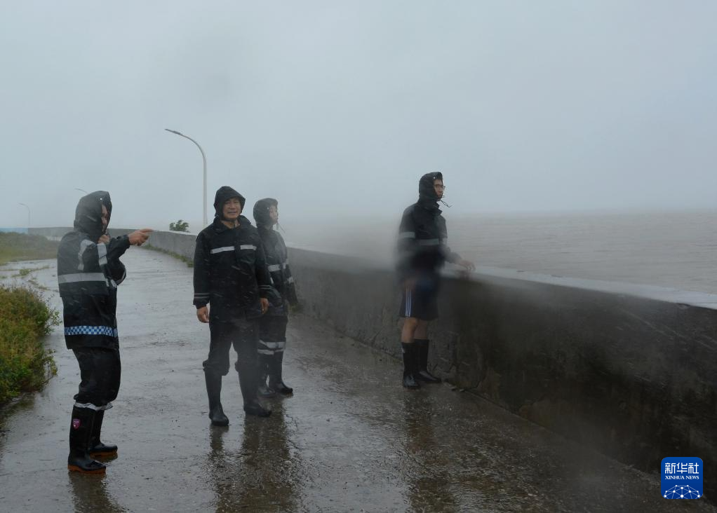 7月25日,福清市江阴镇工作人员在海堤上冒着风雨巡逻。新华社记者 魏培全 摄