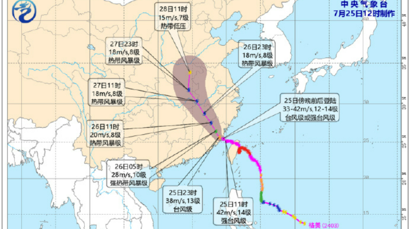“格美”25日傍晚前后登陆福建中部沿海