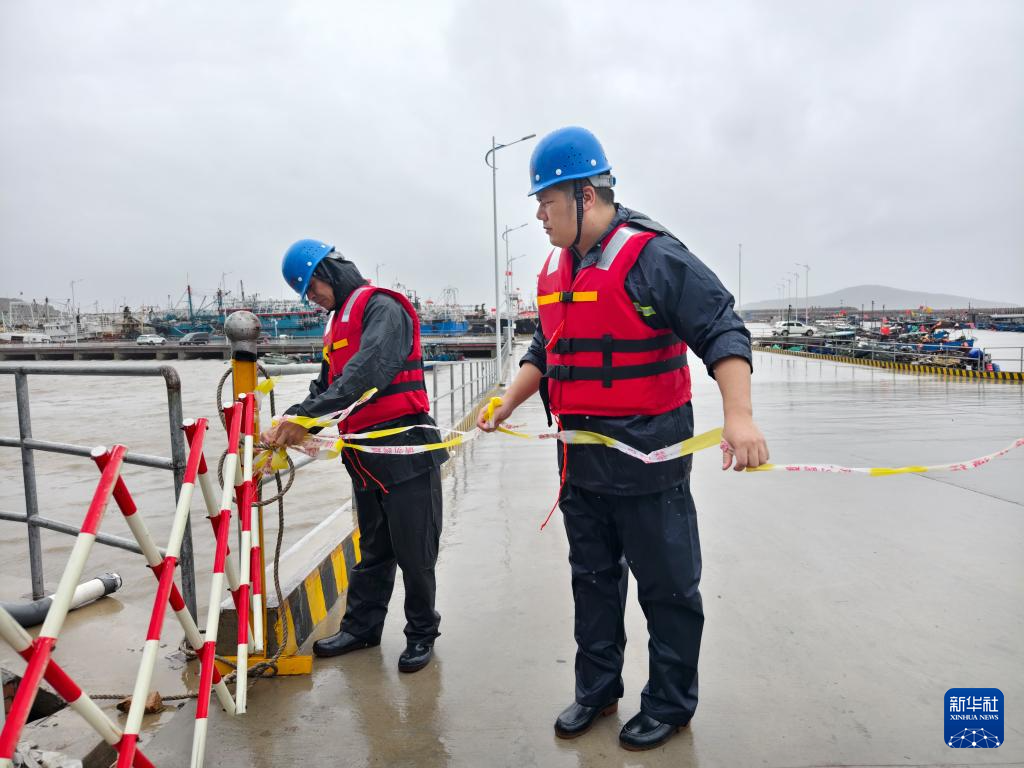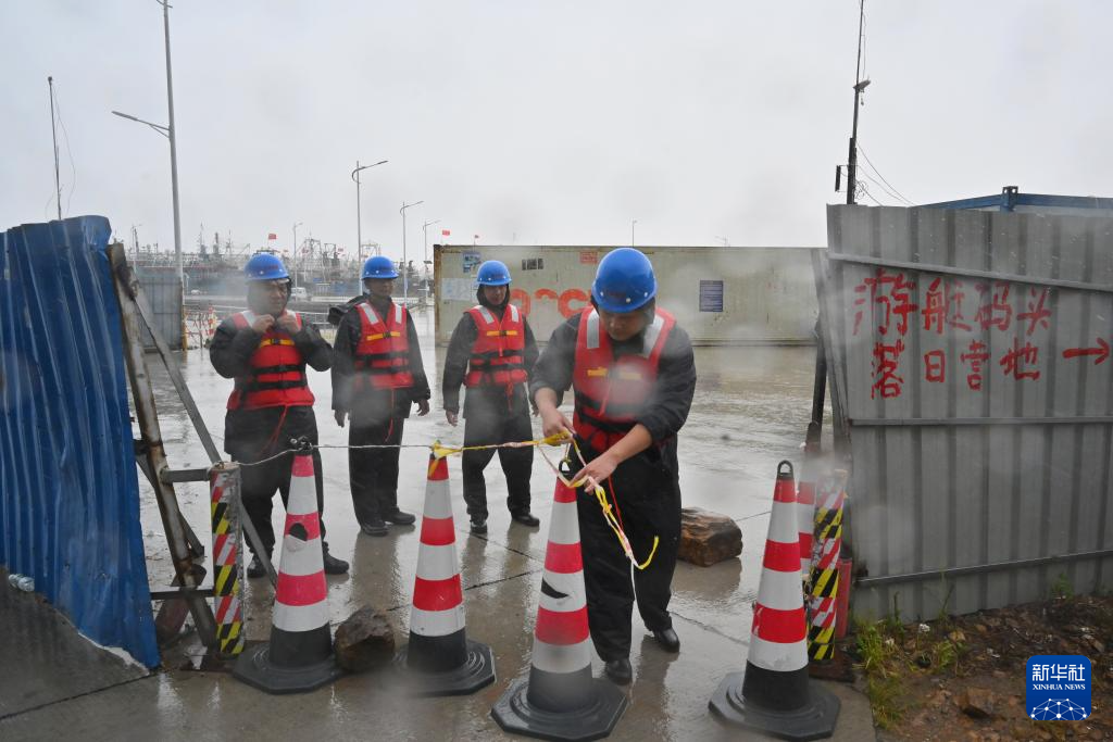 7月25日,福建省宁德市霞浦县三沙镇防台人员在港区码头值守。新华社记者 姜克红 摄