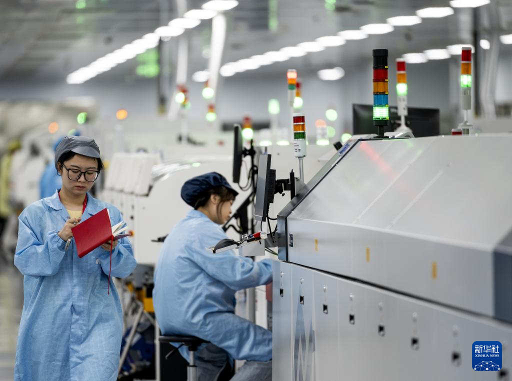 8月1日,技术工人在锐捷网络股份有限公司打造的全新数字化智能工厂生产线上生产网络通讯设备。新华社记者 魏培全 摄