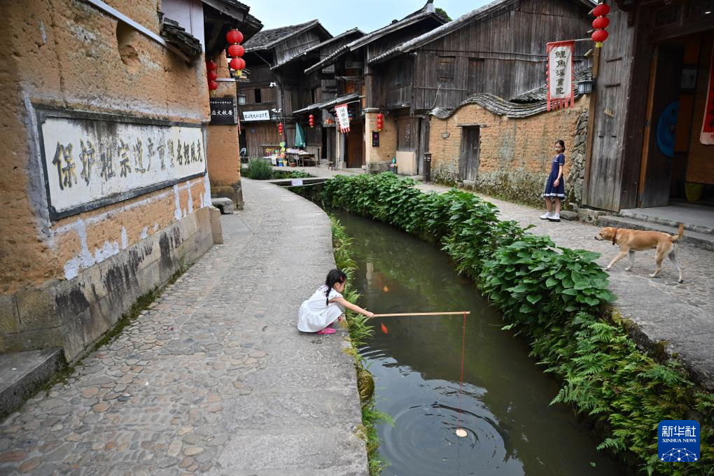 7月14日,游人在浦源村鲤鱼溪景区游玩。新华社记者 姜克红 摄