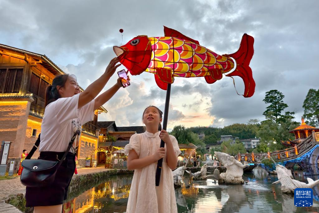 7月29日,一位小女孩在浦源村鲤鱼溪景区举起鲤鱼灯。新华社记者 姜克红 摄