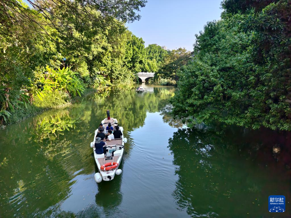 8月7日,参观者乘船游览福州白马河。新华社记者 姜克红 摄