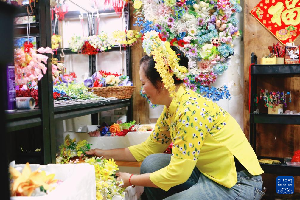 蟳埔村位于福建省泉州湾晋江入海口,蟳埔女簪发戴花的古老民俗被称为“簪花围”。2008年,以“簪花围”为代表的蟳埔女习俗被列入第二批国家级非遗名录。近年来,随着网络上“簪花围”的出圈,各地游客慕名前来体验,带火了当地文旅产业。蟳埔村抓住机遇,积极带动当地妇女学习簪花技艺,实现“家门口”就业增收。