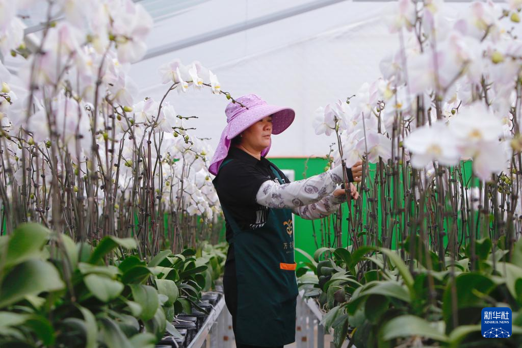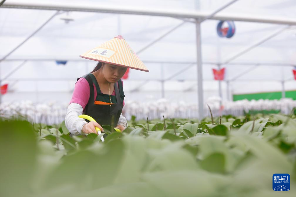 8月9日,花农在龙岩市永定区龙潭镇蝴蝶兰基地挑选蝴蝶兰。新华社记者 陈为 摄