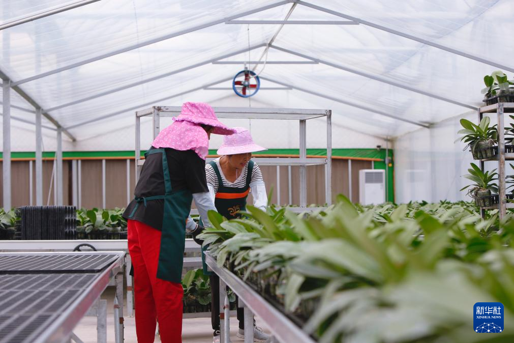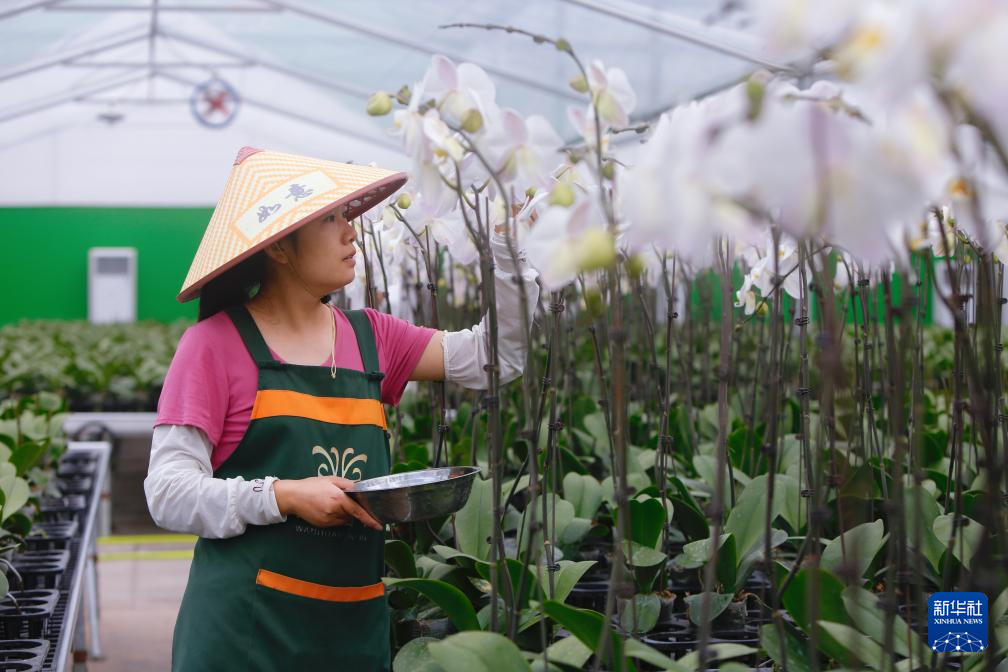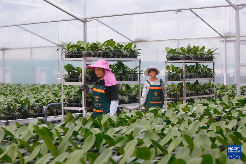 8月9日,花农在龙岩市永定区龙潭镇蝴蝶兰基地管护蝴蝶兰。新华社记者 陈为 摄